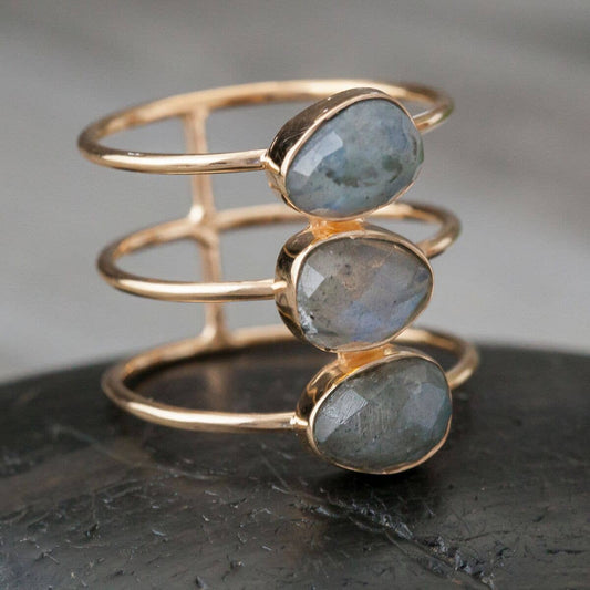 Gold Plated Labradorite Bar Ring: 9